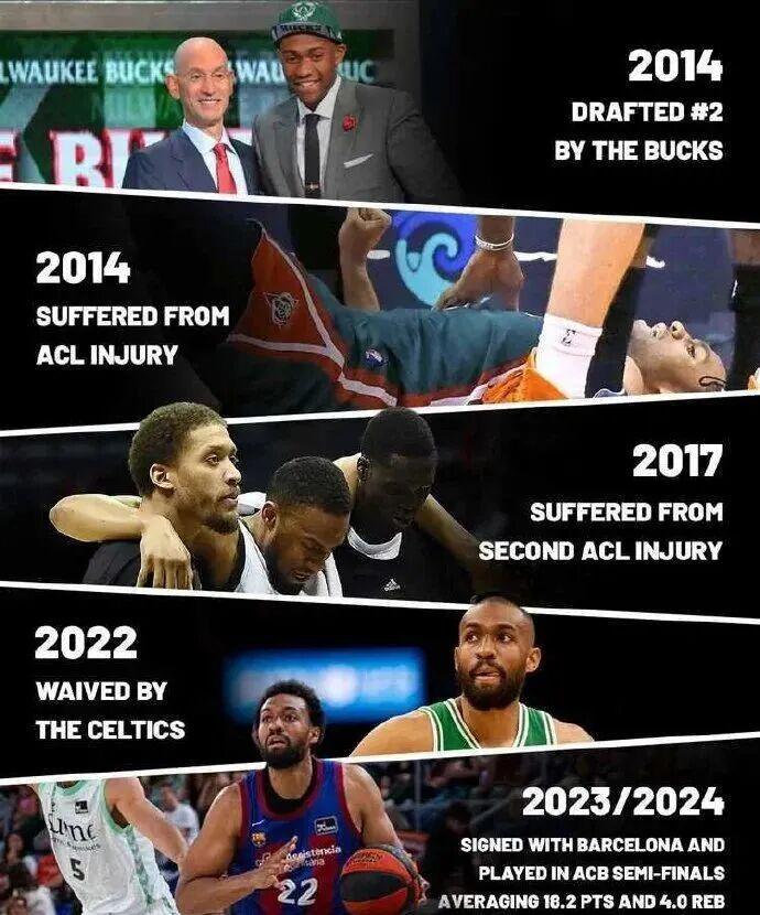 这哥们出生于1995年3月15日,即将31岁仍处于篮球运动员黄金年龄阶段,身高2米&臂展2米13的侧翼,14届NBA榜眼秀,三年级雄鹿时期就能场均20.1分6.2板2.8助1断进账,两项命中率49%与36.5%,他要是真来了CBA可能比麦基加盟北京队还要轰动。